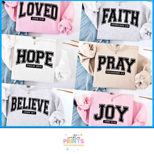 Christian Themed Unisex Adult T-Shirts | Chosen | Hope | Pray | Blessed | Joy | Believe | Simply | Loved | Faith | Grace